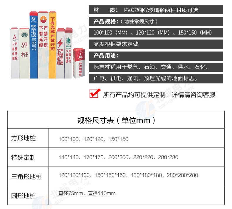 適用范圍:燃氣管道、供水管道、供電、預埋光纜等地面標志
